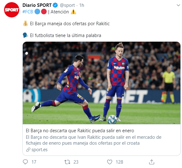 El Barcelona no descarta que el centrocampista croataIvan Rakiticpueda salir del Camp Nou este enero dentro del mercado de fichajes de invierno.