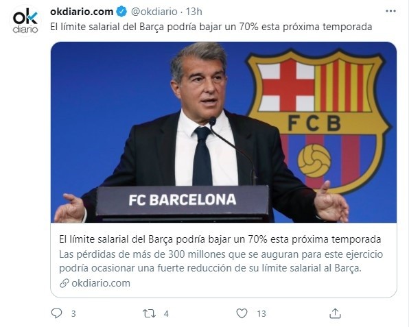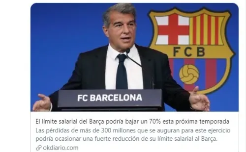 Es por eso que desde OKDiario asumen que Laporta recortará el valor de la masa salarial en hasta un 70%, quedando para la próxima temporada por debajo de Atlético de Madrid. En lo que serán semanas cargadas de reuniones para pedirle a los jugadores que renuncien a una buena parte de su sueldo, Barcelona tiene asumido que para fichar y renovar, necesita recortes que dejarán a más de un futbolista no muy contento.