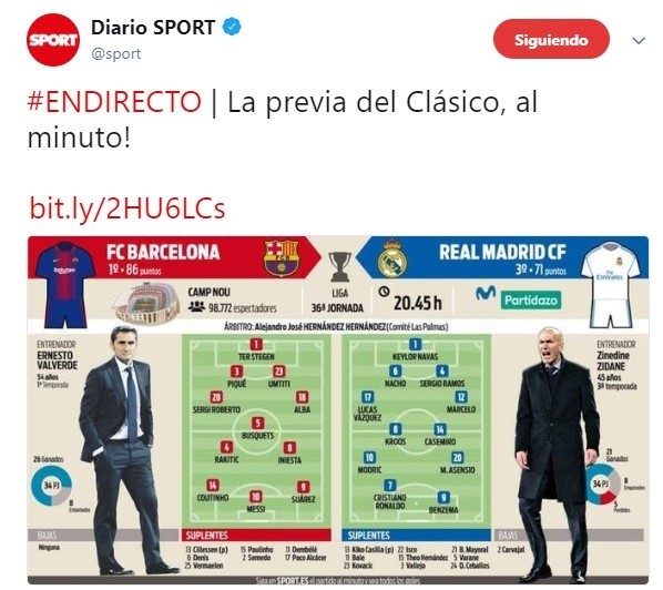 Faltan tan sólo unas horas para empezar a vivir un nuevo clásico español con condimentos más que especiales y tanto Valverde como Zidaneya tienen a los 11 jugadores que van a buscar una victoria que los ayudes a cumplir uno de los objetivos finales de esta temporada.