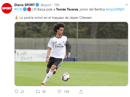 En las últimas horas, sin embargo, se abrió una nueva opción para que Barcelona baje el valor de Cillessen y es que el club portugués incluya en las negociaciones al joven lateral Tomás Tavares.