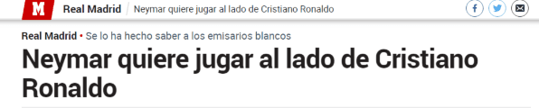 ¿Qué pasó? Según este periódico importante de España, Neymar tendría el deseo de jugar con Cristiano Ronaldo en el Merengue.
