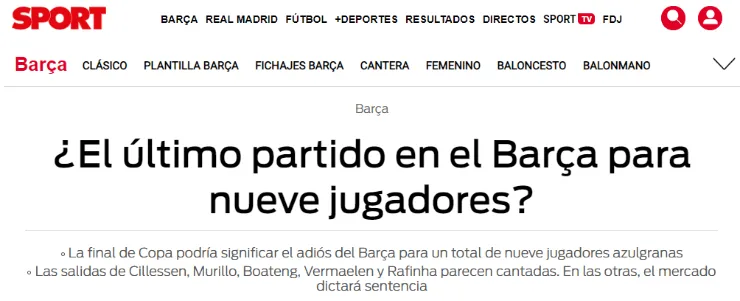 Según informóSport, existe la posibilidad que el compromiso copero sea el último oficial de nada más ni nada menos para nueve jugadores del club Blaugrana.