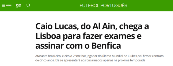 Aparentemente, Caio tiene todo casi cerrado con el Benficade Portugal, club que como punto restante precisa los estudios médicos del jugador para cerciorarse que se encuentra en óptimas condiciones de vestir la camiseta de la institución.
