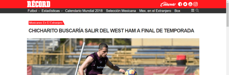 El diarioRécordanuncia que Javier Hernández saldría del West Ham Uniteddebido a la falta de partidos esta última parte de la temporada.