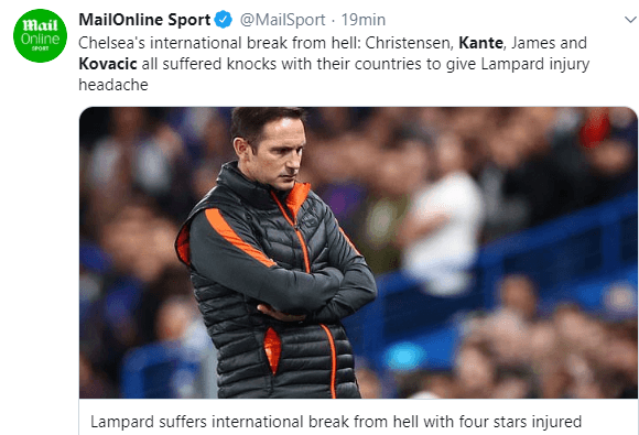 Pero también están lesionados otros tres futbolistas que son titulares para Frank Lamparden Chelsea.