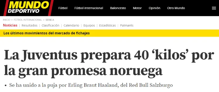 Según reportó Mundo Deportivo, la Juve estaría comenzando a contar los millones necesarios para meterse de lleno en la puja por el joven y prometedorErling Braut Håland.