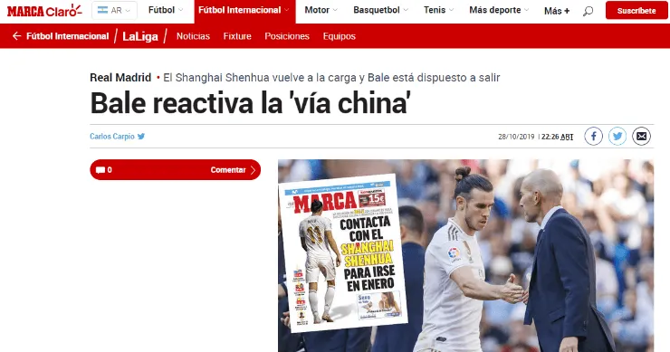 Aparentemente, elShanghai Shenhua, club asiático que buscó hacerse con los servicios del galés la temporada pasada, estaría interesado en hacer un nuevo intento por El Expreso de Cardiff.