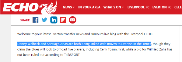Él es una de las opciones que maneja losToffeespara la próxima temporada.