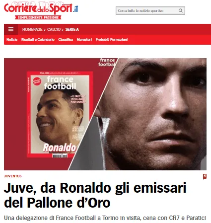 El periódico de Italia explicó que personas vinculadas a France Football se trasladaron hace unos días a Turín para dialogar de forma más íntima con el crack de Portugal.