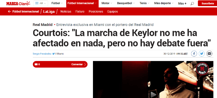 En diálogo con Marca, el portero belga hizo referencia a la salida de Navas. Explicando que no generó cambio alguno en su trabajo la partida de Keylor de la institución Merengue, el ex hombre del Atlético Madrid lanzó: “A mí no me ha ayudado nada el hecho de que ya no esté. Yo creo que es más que ya no hay ese debate desde fuera, porque desde dentro éramos dos porteros que entrenábamos bien compitiendo, como ahora con Areola que es un magnífico portero”.