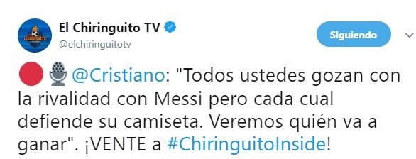 Y luego continuó: “A ustedes les gusta esta cosa de la rivalidad con Messi, pero cada uno defiende su camiseta”. Clarito.