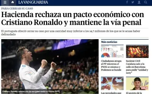 La prensa de España cita a fuentes consultadas por Europa Press para asegurar que el ofrecimiento de los abogados de Cristiano a los funcionarios fue “muy insuficiente”, según publica el diario La Vanguardia.