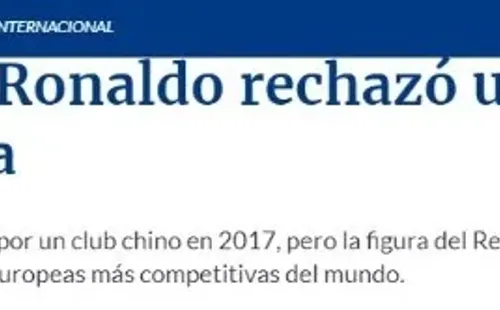 Se trata del fútbol chino, que le ofreció un contrato de 100 millones de dólares por año en un contrato dedos años. La propuesta fue por 2017.