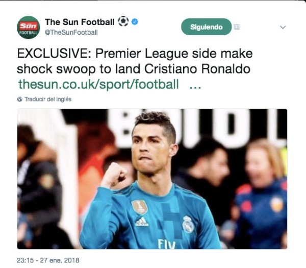 El periódico habla de un “cambio sensacional” y que Ronaldollegaría al Chelsea si el Real Madrid compra a EdenHazard, actualmente en el equipo de Londres.