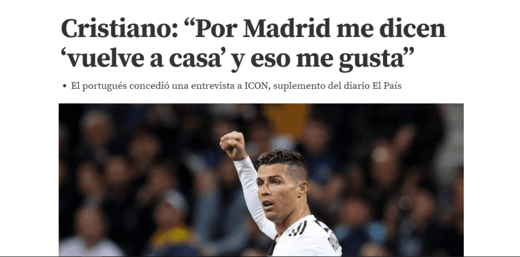 “Los españoles siempre me trataron bien. Quería darles unos puestos de trabajo (Cristiano planea abrir un negocio en aquel país), independientemente de los problemas que he tenido conHacienda, porque eso no lo puedo olvidar ni esconder, mi vida es un libro abierto. Yo cuando voy allí, lo hago con la cabeza erguida. Se que la gente me quiere, sabe que yo le he dado mucho al club y el Madrid me dio mucho a mi también. Cuando voy por la calle, la gente me dice “vuelve a casa, esta casa es siempre tuya. Me gusta escuchar eso”. Más de uno se emocionó…