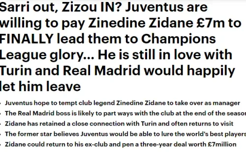Desde la prensa inglesa aseguran que las buenas relaciones deAndrea Agnelli, presidente del club de Turín, y Real Madrid haría queZizousalga sin ejecutar la cláusula de rescisión. El francés tiene contrato hasta 2022.