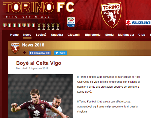 En Torino disputó 42 partidos, convirtió sólo 3 goles y ahora pasó al Celta de Vigo de la Liga de España.