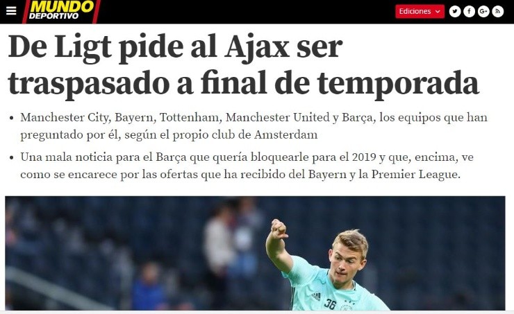 De Ligt sabe que es una de las grandes promesas del fútbol actual y por eso habría comenzado a dialogar con dirigentes del Ajaxpara tratar su salida del club.