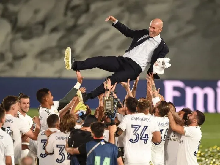 Sin embargo, hubo un detalle que no pasó desaércibido en las fotos que se tomaron del momento de la consagración. Como es tradicional en los clubes de fútbol, uno de los festejos es reunirse y, entre todos los jugadores, lanzar por los aires al técnico del equipo. Real Madrid lo hizo, pero James Rodríguez decidió apartarse y mirar de lejos sin participar en este momento.