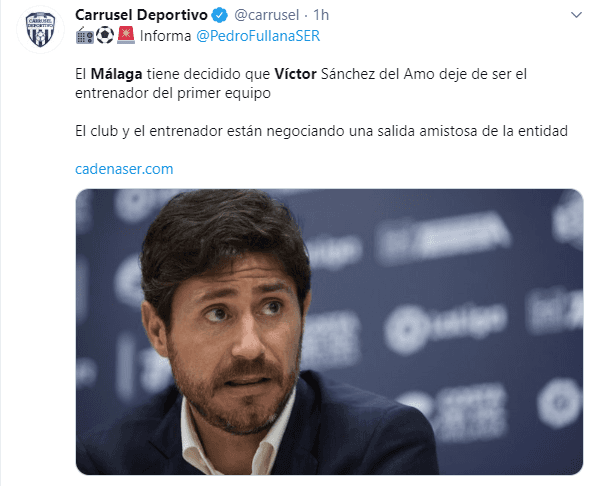 La etapa de Víctor Sánchez del Amo como entrenador del Málaga parece estar viviendo sus últimas horas.El técnico madrileño ha conocido en la tarde de hoy que no volverá a sentarse en el banquillo del equipo andaluz.