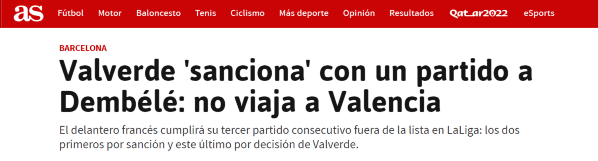 El diarioAsasegura que Ernesto Valverde ‘castigó’ al francés luego de haber visto la tarjeta roja ante el Sevilla.