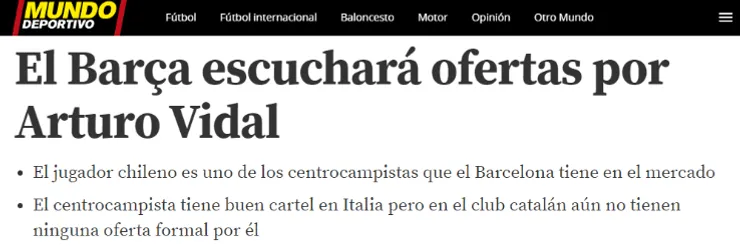 Cabe indicar que, hasta el momento, pese al interés de la institución de La Liga en venderlo, no llegó ningún tipo de oferta formal por el polifuncional chileno.