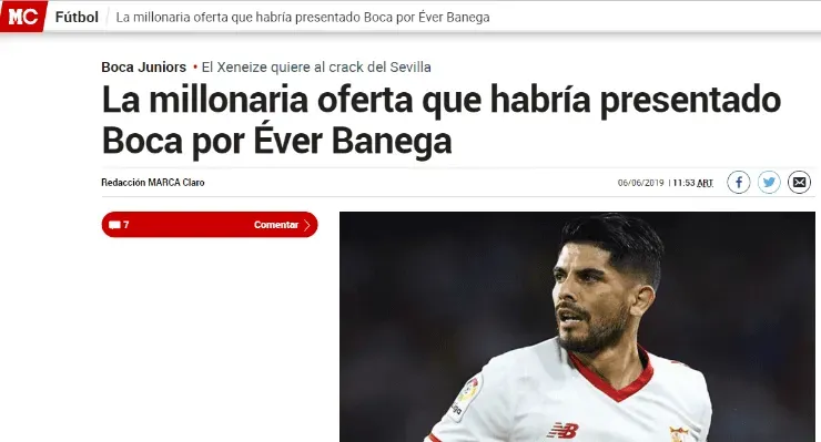 El portal indicó que desde el elenco de La Ribera le acercaron al Sevilla una gran oferta de más de cuatro millones de eurospor el pase del volante de 30 años de edad.