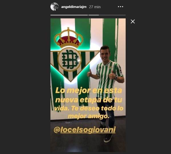 Ángel Di María, compatriota de Lo Celso que también surgió de Rosario Central, utilizó su cuenta oficial de Instagram para desearle buena suerte al joven de 22 años de edad en su nueva experiencia.