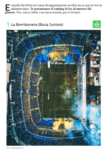 Por escándalo, la Bombonera está arrasando en la votación. El estadio de Boca se encuentra en lo más alto.