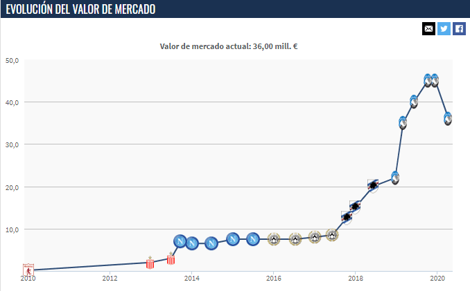 Sin embargo, en la última actualización que hizo Tranfermarkt de los precios en el mercado de transferencias, Duván Zapata ya habría bajado casi 10 millones de euros de su último valor dentro de la página. Según la base de datos, ahora el colombiano se cotiza por 36 millones de euros. Si bien esto es una referencia, la tendencia tendría grandes repercusiones y alguno que otro club grande aprovecharía este bajón. Se dice que el Atlético de Madrid estaría interesado en ficharlo para la temporada 20/21.
