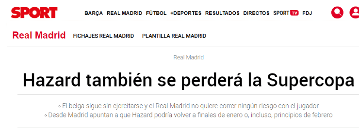Pese a que las intenciones del Cuerpo Médico del Real eran recuperarlo lo antes posible, el portal en cuestión explicó que el hombre de Bélgica no llegará a ponerse a punto para la Supercopa de España.
