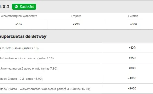 En el análisis de betway, el favorito para ganar este partido son los Wolves de Raúl Jiménez, cuyo momio paga +105, en desmedro de los +300 del Everton. El empate, en tanto, paga en el momio +220.