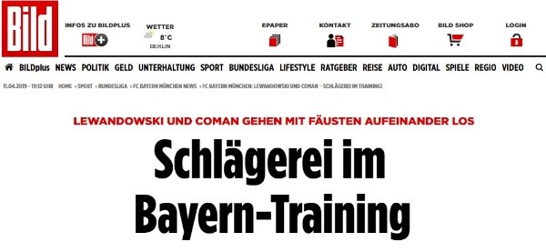 Según informaron varios medios alemanes, como Bild o TZ, Robert Lewandoski y Kingsley Coman tuvieron una pelea a golpe de puño.