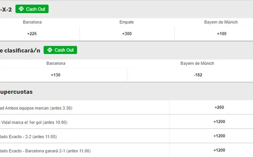 En el análisis que nos entrega betway, el favorito para ganar este juego es el Bayern Múnich que paga +100 en los momios, por sobre el Barcelona que paga +225. Si crees que termina en empate en los 90 minutos, paga +300. Pero ojo, las cuotas especiales de betway también son una buena opción para jugar.