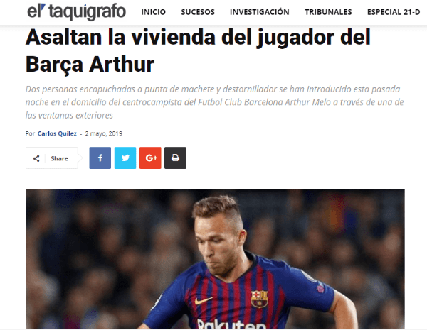 La peor parte, sin embargo, se la llevó el hermano de Arthur, quien estaba en la casa viendo el partido del Barcelona por televisión y fue amenazado “a punta de machete y destornillador”.