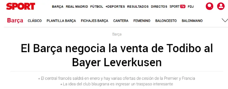 Según reportó Sport, el Barcelona, de cara al próximo mercado de pases, estaría evaluando de forma más que seria desprenderse de forma definitiva de Todibo y hacer ingresar una suma importante por sus servicios.
