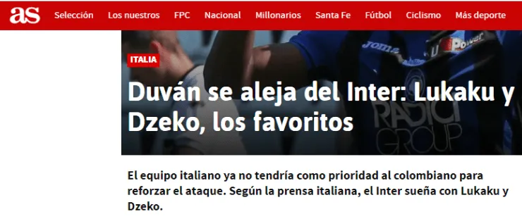 Uno de los tantos interesados en hacerse con los servicios de Duván es nada más ni nada menos que el Inter, club que también disputará la próxima edición de la Champions League y está en busca de una cuota goleadora importante que acompañe a Lautaro Martínez y Mauro Icardi.