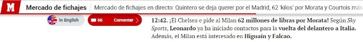 Además, el medio destaca que, en caso de no darse el traspaso de Álvaro, el Milanse mantiene firme manteniendo como alternativas a GonzaloHiguaín y Radamel Falcao.