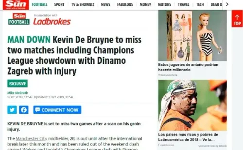 A horas del encuentro contra el equipo croata, The Sun confirmó que el belga no estará ni en el banco de suplentes. Su lugar probablemente lo ocupe Bernardo Silva.