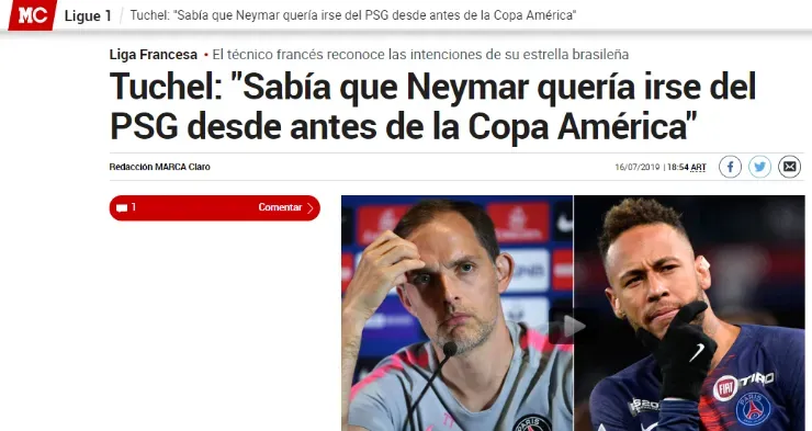 Ahora, según detalló Marca, el siguiente en aclarary confirmar los planes de Ney habría sido nada más ni nada menos que Thomas Tuchel, DT delParís Saint-Germain.
