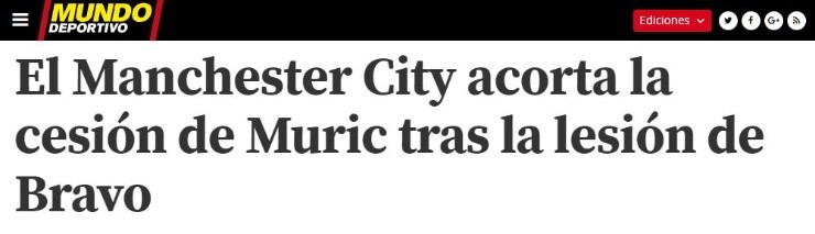 Fruto de la baja de Bravo, el City tuvo que ir en busca de una vieja incorporación:Arijanet Muric, de apenas 19 años.