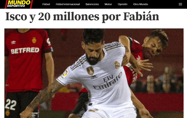 Pero, según informa Mundo Deportivo, la idea del Real no es sacarlo por ese monto. Florentino Pérez, presi de la institución, buscaría llevárselo a cambio de 20 millones de euros y de Isco.