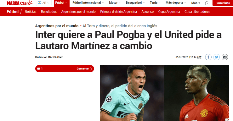 Dejando en claro que está abierta a escuchar ofertas y negociar en torno al futuro de Pogba, la institución de la Premier League pidió nada más ni nada menos que un intercambio por Lautaro Martínez.