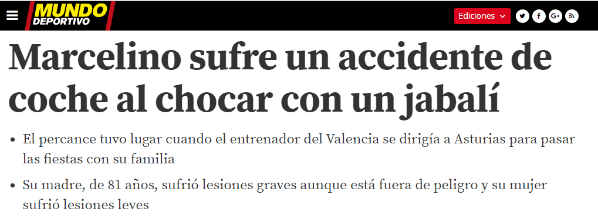 “Tras ser atendido en el servicio de Urgencias del Hospital San Pedro, Marcelino recibió el alta médica pero, según el Diario La Rioja, su madre, de 81 años, resultó herida grave aunque está fuera de peligro y su mujer sufrió lesiones leves”, informó el periódico Mundo Deportivo.