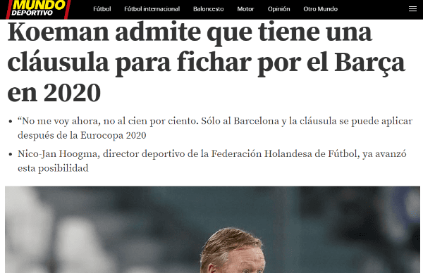 Las declaraciones de Koeman dejan la puerta más que abierta para su llegada a Barcelona cuando finalice esta temporada. La pelota la tiene la diregencia catalana que tendrá que decidir si sigue o no Valverde.