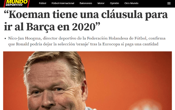El director de la Federación Holandesa de fútbol confirmó que el DT tiene un cláusula de salida para ir al Culétras la Eurocopa 2020 pero no contó cuanto es la suma.