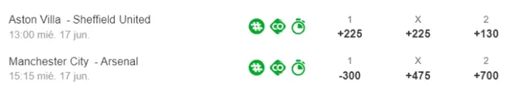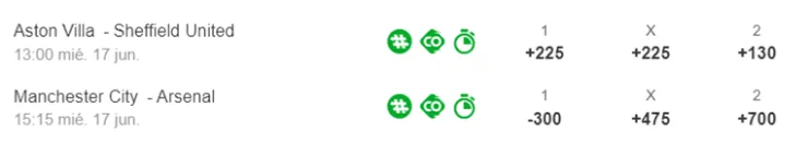 Por su parte, para el segundo partido, Manchester City corre como favorito al pagar -300, por sobre los +700 del Arsenal, mientras que el empate paga +475.