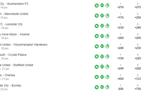 Betway, te cuenta que el favorito del primer encuentro del regreso del futbol inglés es Sheffield United, que paga +130 en desmedro de los +225 del Aston Villa, mientras que el empate entre ambos paga +225.
