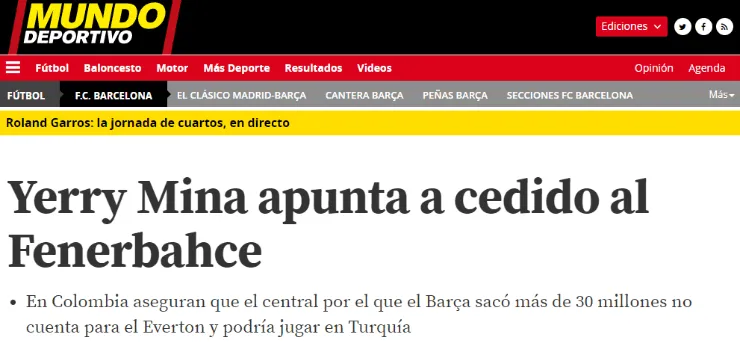 El interesado en abrirle las puertas al ex deportista Culé sería nada más ni nada menos que elFenerbahcede Turquía, institución que ya se ofreció en su momento a hacerle un hueco en el primer equipo al colombiano.