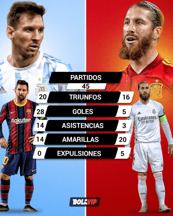 Por su parte, Sergio Ramos pudo vencer al mítico jugador argentino en 16 ocasiones, registrando un 42.2% de los puntos obtenidos si tenemos en cuenta los 9 empates que completaron. El histórico defensor de Real Madrid aportó 5 goles y 3 asistencias en esos encuentros, aunque en 5 oportunidades vio la roja y tuvo que volverse antes a los vestuarios.